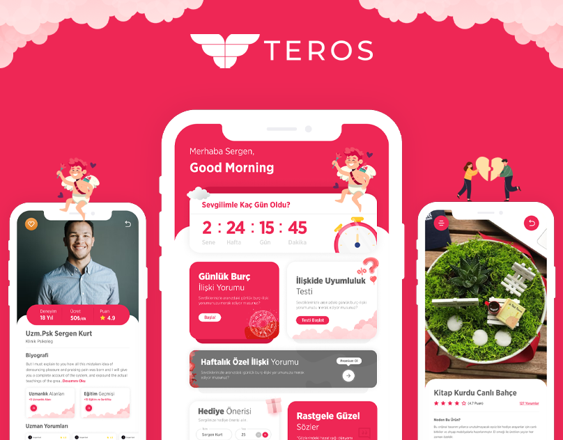 TThis mobile app UI/UX design for Teros focuses on enhancing emotional connection through a clean and engaging interface. Designed with user comfort and interaction in mind, it delivers a seamless experience across relationship, friendship, and therapy features.