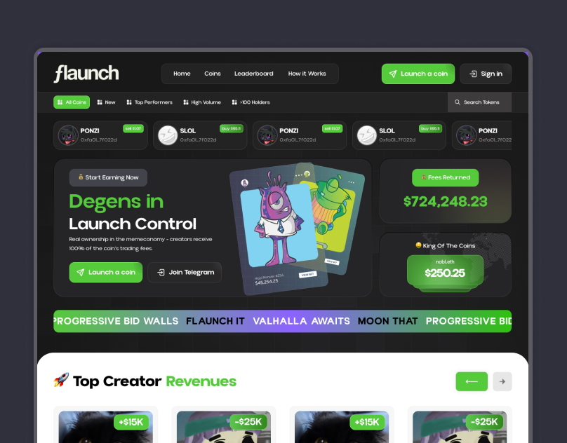 This UI/UX design for Flaunch is crafted to deliver a high-energy and intuitive experience for crypto users. With a focus on clarity, speed, and modern interface patterns, it simplifies complex interactions while maintaining a visually striking and engaging design.